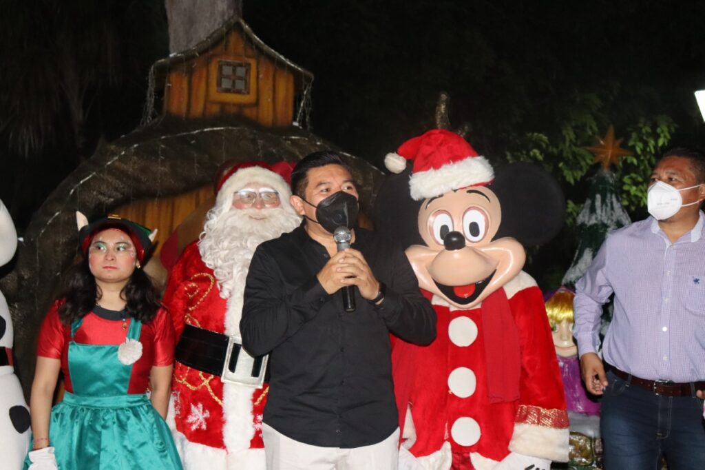 Valladolid, Yucatán, 5 de diciembre de 2021.- “Los vallisoletanos se merecen acciones dignas, esta administración estará trabajando durante los tres años para brindárselas”, afirmó el presidente municipal, Alfredo Fernández, al realizar el encendido oficial de adornos navideños que por primera vez fueron instalados en diferentes parques de la ciudad.
