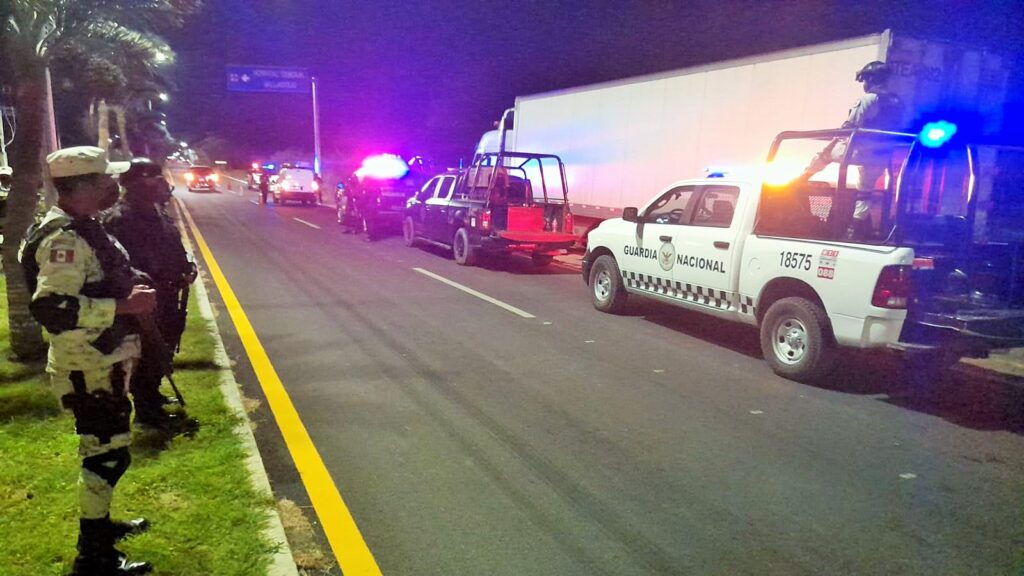 En el operativo se observa el apoyo de binomios caninos de la SSP, en las inspecciones que se encuentran realizando.