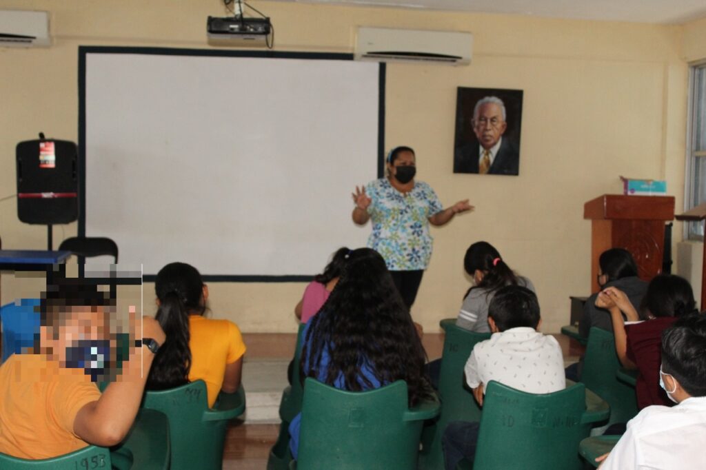 Valladolid, Yucatán, a 07 de abril de 2022- Alumnos de la escuela secundaria estatal José Inés Novelo, participaron en el taller “Salud Integral del Adolescente” que fue impartido por la psicóloga del DIF Municipal, Daría Pool.