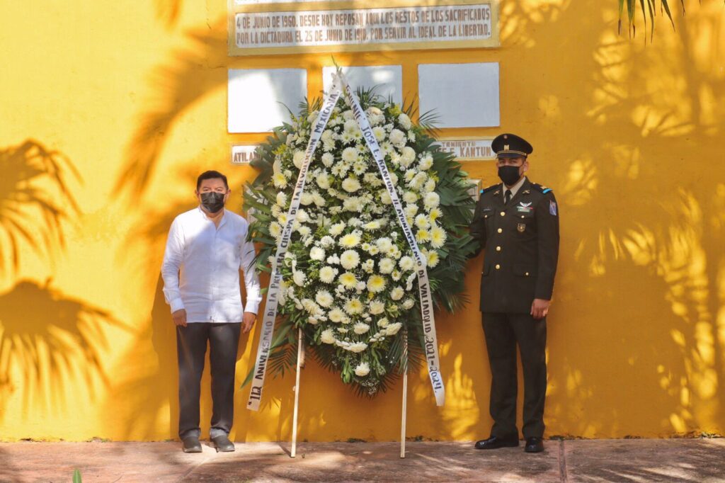 Tras la sesión, las autoridades municipales y militares depositaron ofrendas florales y montaron guardia de honor en donde reposan los restos de los sacrificados por la dictadura el 25 de junio de 1910.