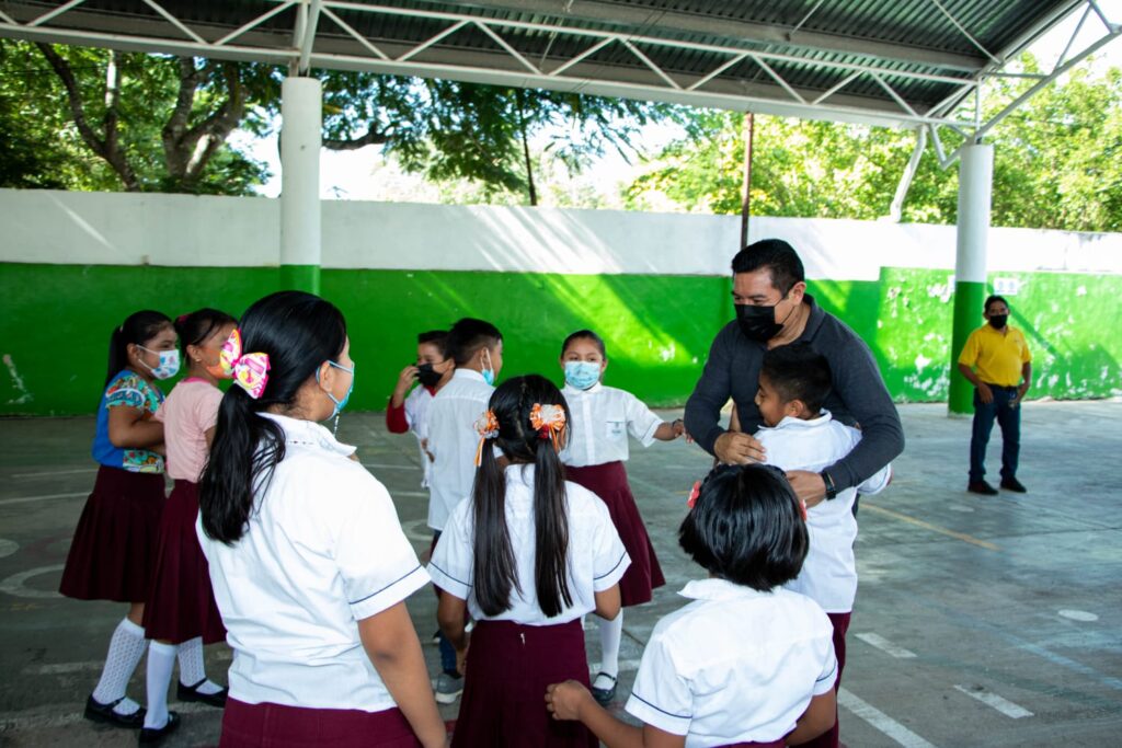 Valladolid, Yucatán, a 5 de octubre de 2022.- “Gracias por tomarnos en cuenta, como nadie lo había hecho”, le expresaron al alcalde Alfredo Fernández alumnos, maestros y padres de familia, durante el recorrido que realizó por las últimas escuelas de nivel primaria, secundaria y telesecundaria de la cabecera como parte del programa “Sinergia por la Educación”.