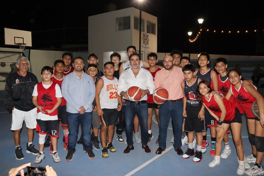 Progreso, Yucatán a 14 de enero de 2023. El alcalde de Progreso, Julián Zacarías Curi continúa reforzando su compromiso en pro del deporte, la convivencia familia y el bienestar animal, pues anoche entregó a los colonos de la Francisco I. Madero un renovado parque y cancha “Rafael Cházaro Pérez”; lugar muy concurrido por niños y jóvenes de la zona.