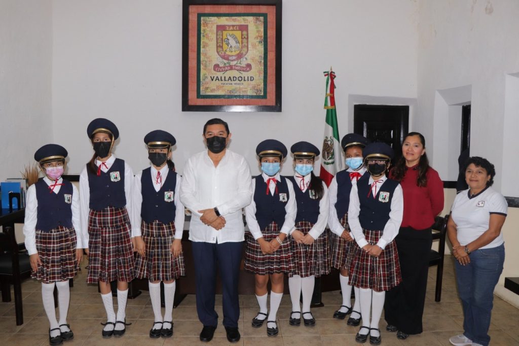 Como parte del programa, los alumnos, en este caso pertenecientes a la escolta del plantel educativo, conocieron el salón donde se encuentran las fotografías de los alcaldes que ha tenido Valladolid, así como el área de recepción en donde se entregan las solicitudes e invitaciones destinadas al presidente municipal.