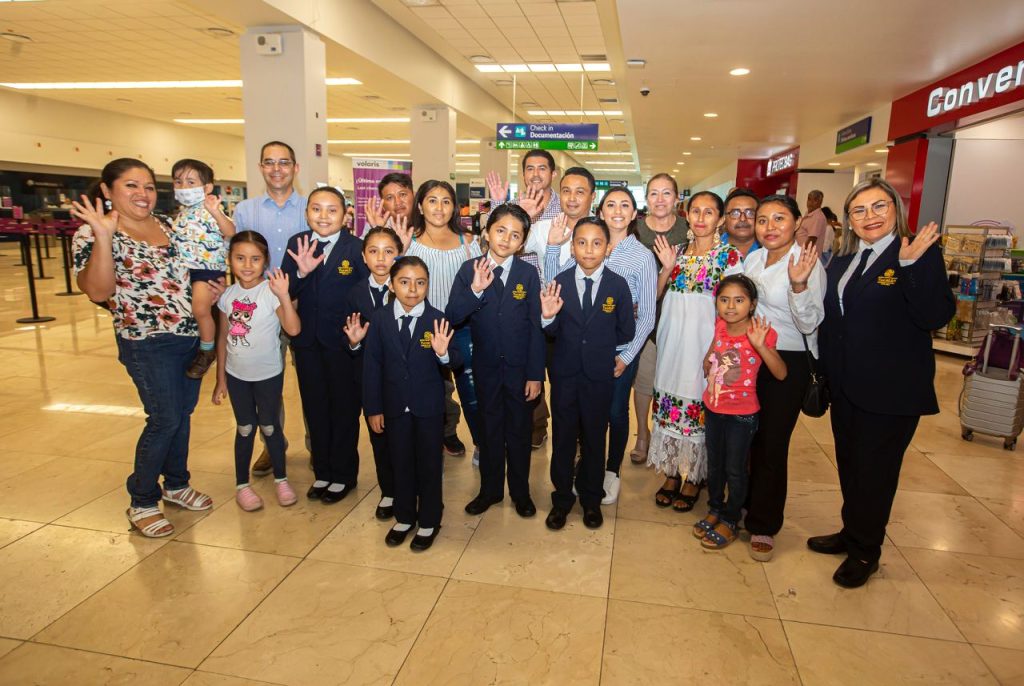 Las y los alumnos de quinto grado de primaria viajaron este martes, acompañados por la maestra María Luisa Franco Burgos, encargada del área de proyectos y concursos de servicios educativos de Educación Primaria de la Secretaría de Educación del Gobierno del Estado de Yucatán (Segey).