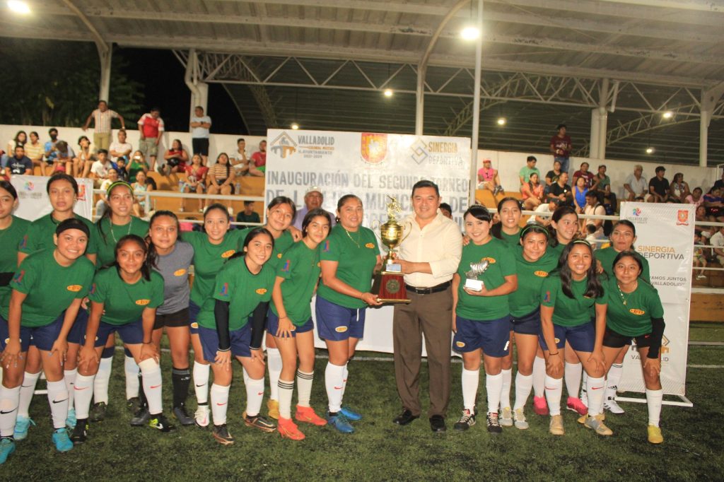 Valladolid, Yucatán, a 10 de junio de 2023- Con la participación de 15 equipos reunidos en la cancha de pasto sintético de la Unidad Deportiva del Águila, el alcalde Alfredo Fernández, inauguró el segundo torneo de la liga municipal de fútbol femenil y realizó la premiación del primer torneo.