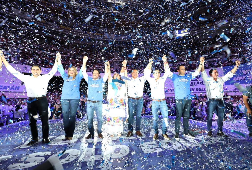 Fue una fiesta panista, en la que recortes de papel cayeron del techo, luego de los discursos encendidos de los panistas. Al final del evento, en una muestra de unidad, todos se tomaron la foto grupal que refleja el trabajo en equipo para seguir transformando a Yucatán.