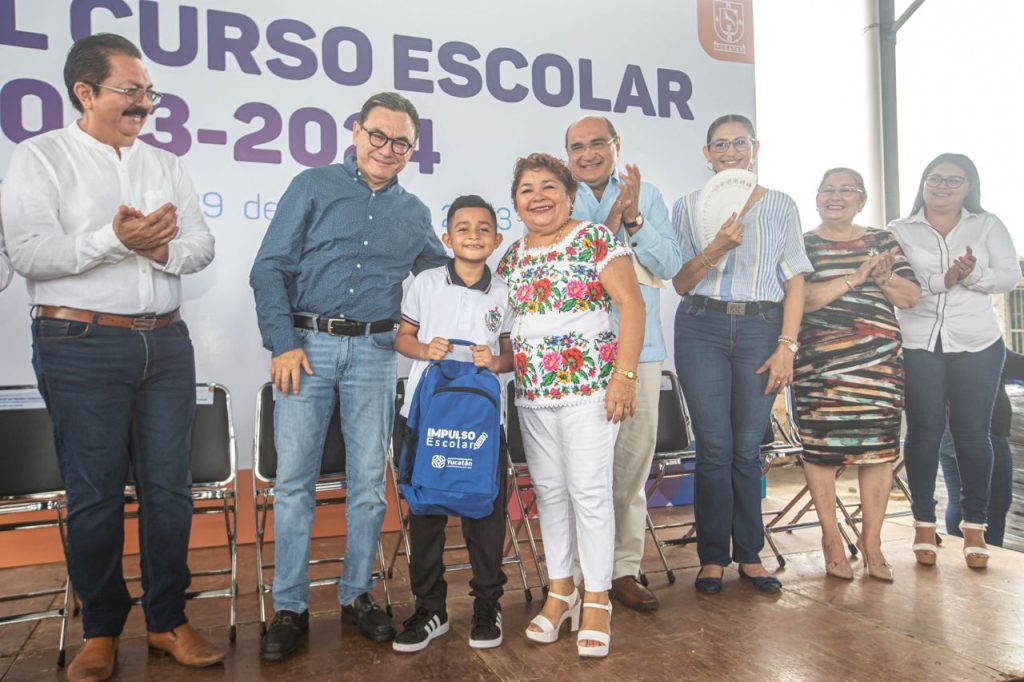 Mérida, Yucatán a 29 de agosto de 2023.- Con el objetivo de apoyar la economía de miles de familias yucatecas y para que las y los estudiantes de educación básica cuenten con los apoyos necesarios para impulsar su aprendizaje, la Secretaría de Educación del Gobierno del Estado de Yucatán (Segey), hizo entrega de paquetes escolares del programa Impulso Escolar para beneficio de estudiantes de nueve escuelas primarias, en un evento realizado en la primaria “Ignacio Manuel Altamirano”, de la colonia Miraflores.