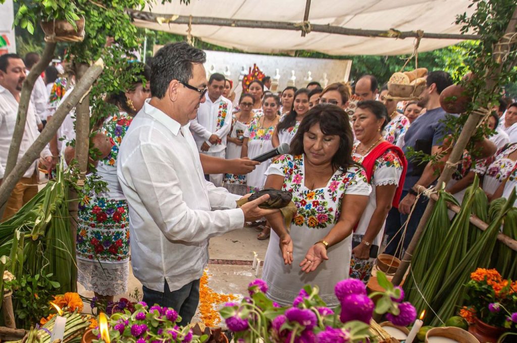 Mérida, Yucatán, a 31 de octubre de 2023.- La Secretaría de Educación del Gobierno del Gobierno del Estado de Yucatán (Segey), realizó su tradicional muestra de altares de “Janal Pixan” en cuyo marco se resaltaron los valores culturales de nuestros antepasados mayas y se rindió un tributo a grandes figuras del teatro regional, Héctor Herrera Álvarez “Cholo” y Wilberth Herrera Pérez, así como de docentes y personal educativo que han sido parte invaluable de la dependencia estatal.