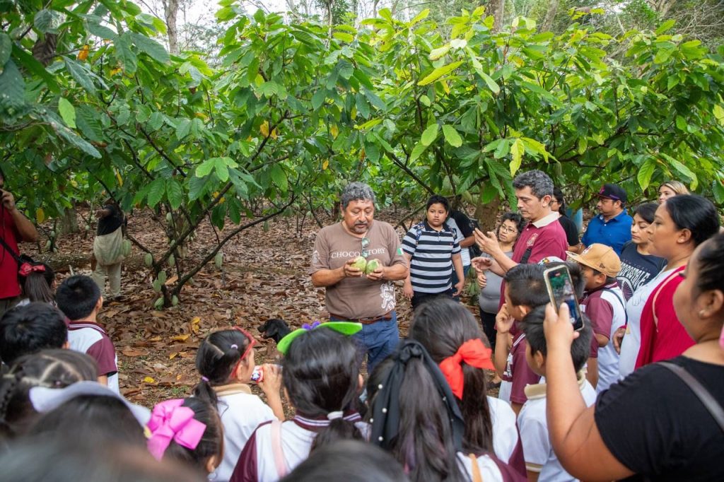 De este modo, el equipo Valentinos conformado por alumnas y alumnos del tercer grado de primaria, realizó una visita a la hacienda “Cacao Criollo Maya” ubicado en la comisaría de Yaxhom del municipio de Oxkutzcab para conocer el árbol del cacao, los procesos de siembra, cosecha y fermentación del grano, viviendo una experiencia única que complementa los conocimientos previamente recibidos en el aula y en la que participaron los estudiantes, madres y padres de familia.