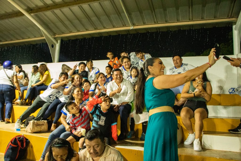 En la inauguración estuvo presente el responsable de la dirección de obras públicas, Alán Marrufo, quien detalló que, para la obra, se realizó la instalación de 50 milímetros de pasto sintético, dos porterías, dos casetas de jugadores, una caseta para los árbitros y 24 reflectores led. De igual forma, se construyeron 4 pozos de 10 pulgadas y las trincheras pluviales