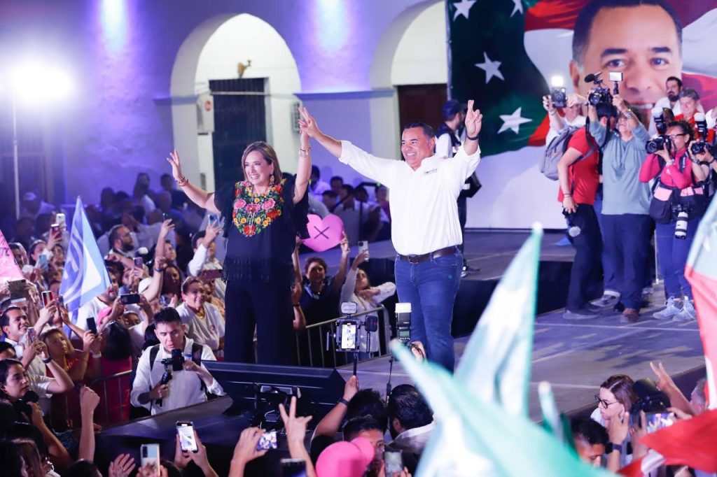 Ante miles de simpatizantes de los partidos políticos que integran la Alianza Fuerza y Corazón por México pero también de líderes y simpatizantes de Morena que se han sumado a Renán Barrera en las semanas recientes, la candidata presidencial dijo que “Yucatán es referente para todo el país, porque aquí los mexicanos viven sin miedo y en mi gobierno vamos a apostarle a yucatanizar la seguridad pública de México”Por su parte, Renán Barrera dijo que “los temas de los yucatecos los decidimos los yucatecos” y que la bandera yucateca simboliza la unidad de propósitos anteponiendo lo que es mejor para Yucatán más allá de colores o ideologías.