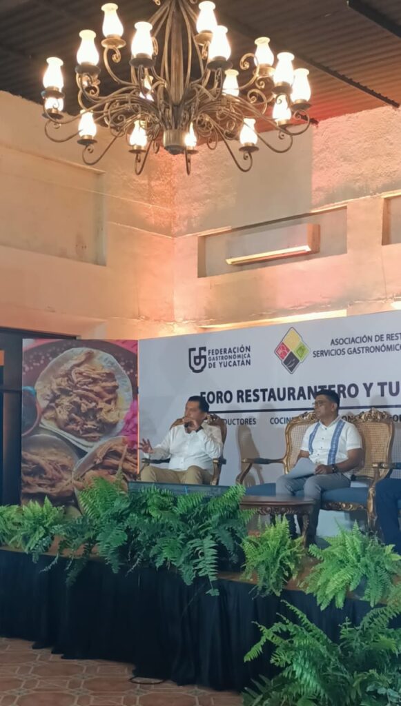 Valladolid, Yucatán, a 14 de mayo de 2024.- Durante su participación del candidato de Morena-PT, en el “Foro Restaurantero y Turístico por Valladolid”, el cual fue organizado por la Asociación de Restaurantes y Servicios Gastronómicos de Valladolid, refrendó su compromiso de ser gestor incansable de recursos para promocionar el impulso al turismo, el apoyo a los restauranteros y trabajadores del sector turístico y movilidad.