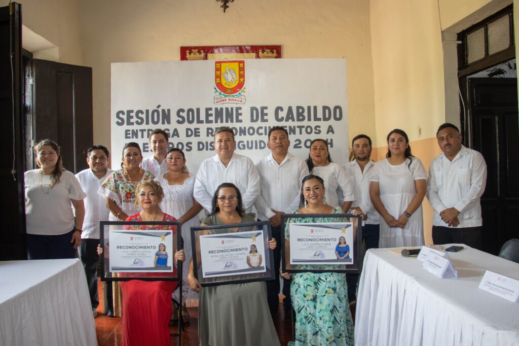 Fue durante una Sesión Solemne de Cabildo, encabezada por el presidente municipal interino Manuel Loria, en que se hizo la entrega de los galardones, destacando el de la maestra Celsa del Carmen Cupul Cauich, del Cobay Valladolid, como la maestra distinguida del municipio de Valladolid 2024, quien, a su vez, recibió el reconocimiento de maestra distinguida 2024 del nivel medio superior.