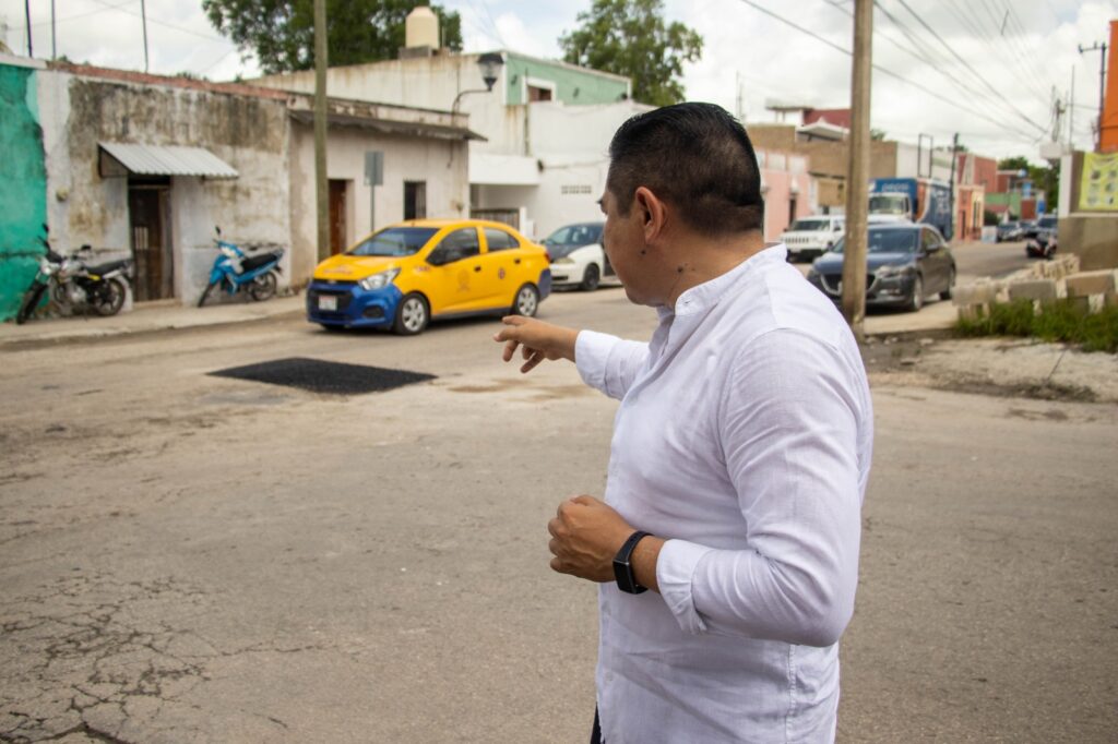 Valladolid, Yucatán, a 25 de junio de 2024.- Consiente de las condiciones de las calles en varios sectores de Valladolid, el presidente municipal Alfredo Fernández supervisó los trabajos de bacheo que se reactivaron hoy en la ciudad ante el cese de las lluvias.